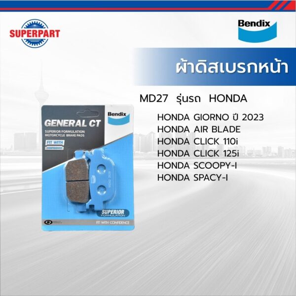 ผ้าดิสเบรกหน้า BENDIX General CT MD27 HONDA สำหรับรถมอเตอร์ไซค์