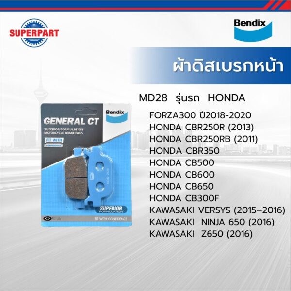 ผ้าดิสเบรกหน้า BENDIX General CT MD28 HONDA สำหรับรถมอเตอร์ไซค์