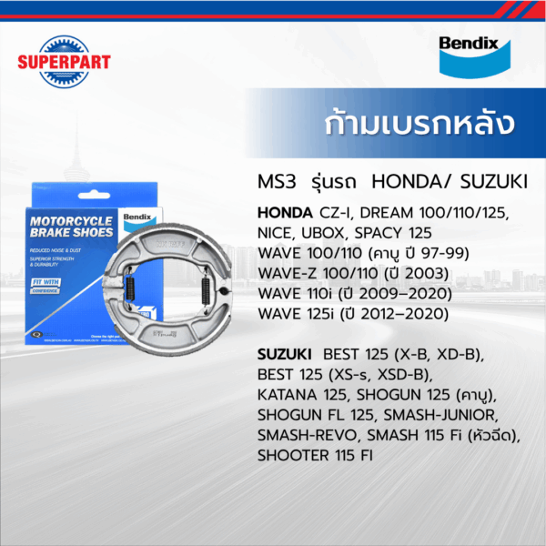 ก้ามเบรกหลัง BENDIX General CT MS3 HONDA SUZUKI สำหรับรถมอเตอร์ไซค์