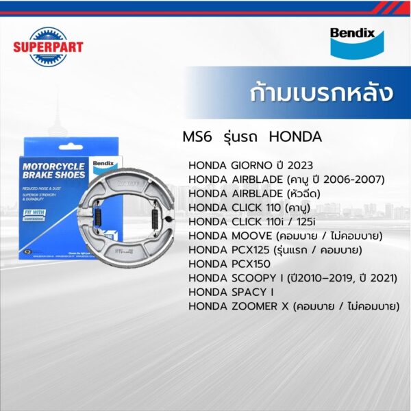 ก้ามเบรกหลัง BENDIX General CT MS6 HONDA สำหรับรถมอเตอร์ไซค์