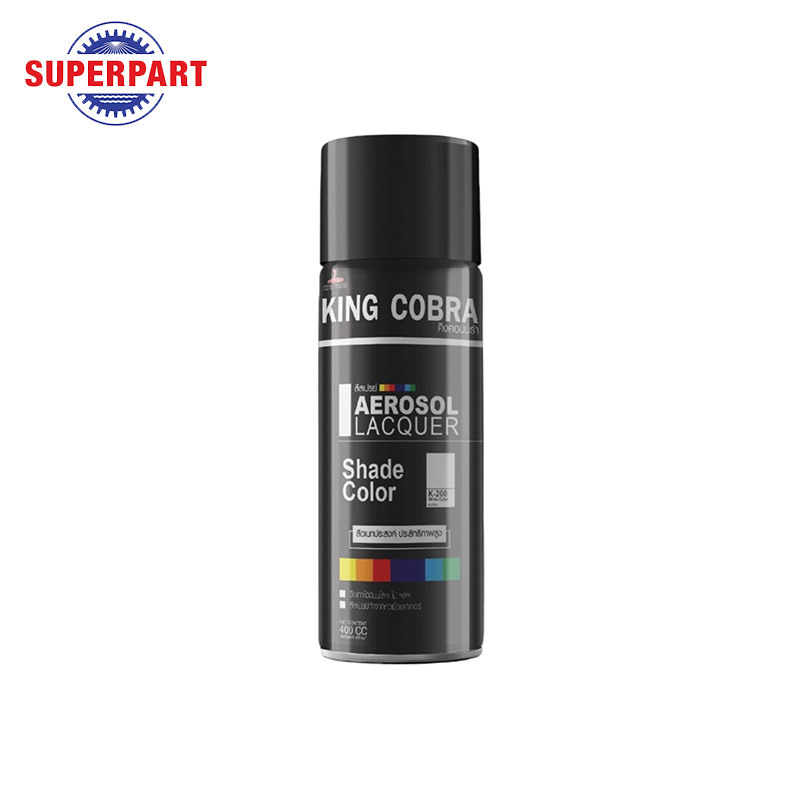 สีสเปรย์ King Cobra สีสเปรย์อเนกประสงค์ ใช้ได้ทั้งงานไม้และงานเหล็กโลหะ ทำจากหัวเชื้อแลกเกอร์ ประกอบกับแม่สีที่ให้ความสวยสด ทนทาน แห้งเร็ว สามารถยึดเกาะได้ดี ใช้ได้ทั้งงานเฟอร์นิเจอร์ และของใช้ในบ้าน ของใช้ในสำนักงาน โต๊ะ เก้าอี้ ของเล่น พัดลม จักรยาน ตู้เหล็ก วัสดุที่เป็นพลาสติกทุกชนิด ฯลฯ