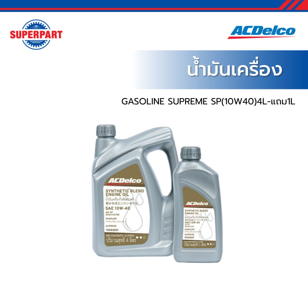 น้ำมันเครื่องเบนซิน ACDelco GASOLINE SUPREME SN 10W40 4L แถม 1L (19379616)