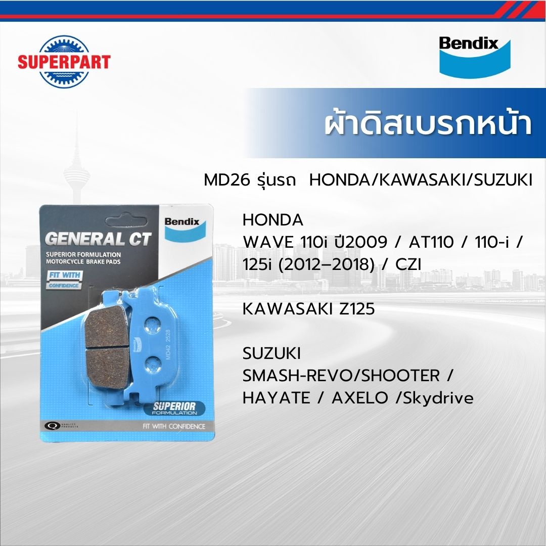 BENDIX General CT MD26 ผ้าดิสเบรกหน้าสำหรับรถมอเตอร์ไซค์หลายรุ่น