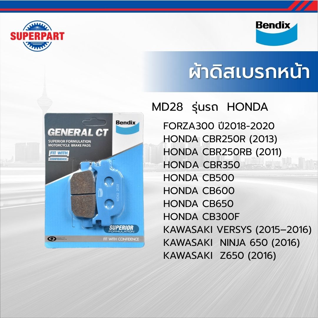 BENDIX General CT MD28 ผ้าดิสก์เบรกหน้าสำหรับมอเตอร์ไซค์ขนาดกลางถึงใหญ่